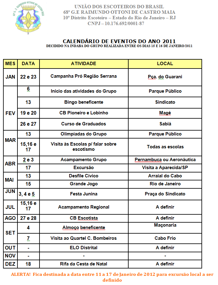 Calendário do Rocama